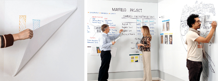 Sie können jetzt ganze Wände als Notiz- und Skizzenfläche nutzen, sogar Pfeiler und Türen, optional auch mit magnetischen Eigenschaften.