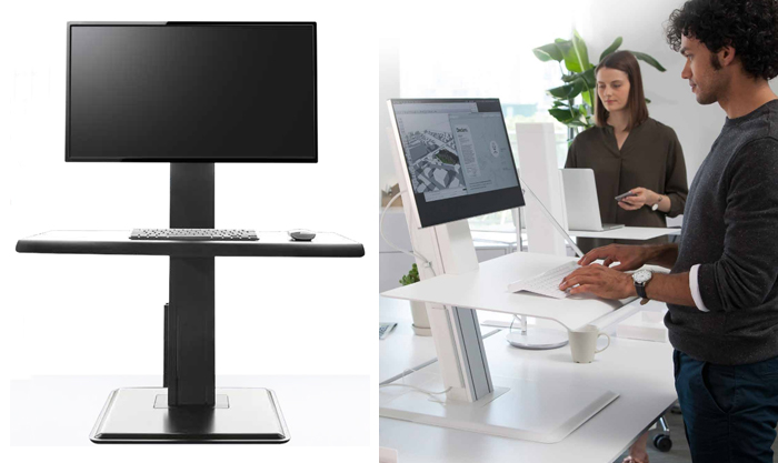 Die kostengünstige Lösung zur Nachrüstung bestehender Arbeitsplätze mit einer Sitz-/Steh-Option für Benutzer verschiedener Körpergrößen.