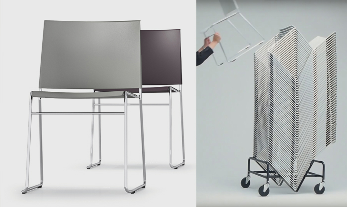 Ein weiterer Vorteil: er ist ein extremes Leichtgewicht (nur 4,5 kg) und ein Stapelwunder (20 Stühle am Boden stehend, 50 Stühle im Stapelwagen).