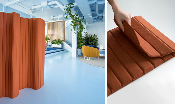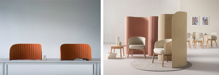 Die mobile Schallschutzwand Focus bietet textile Ungestörtheit und Ruhe.